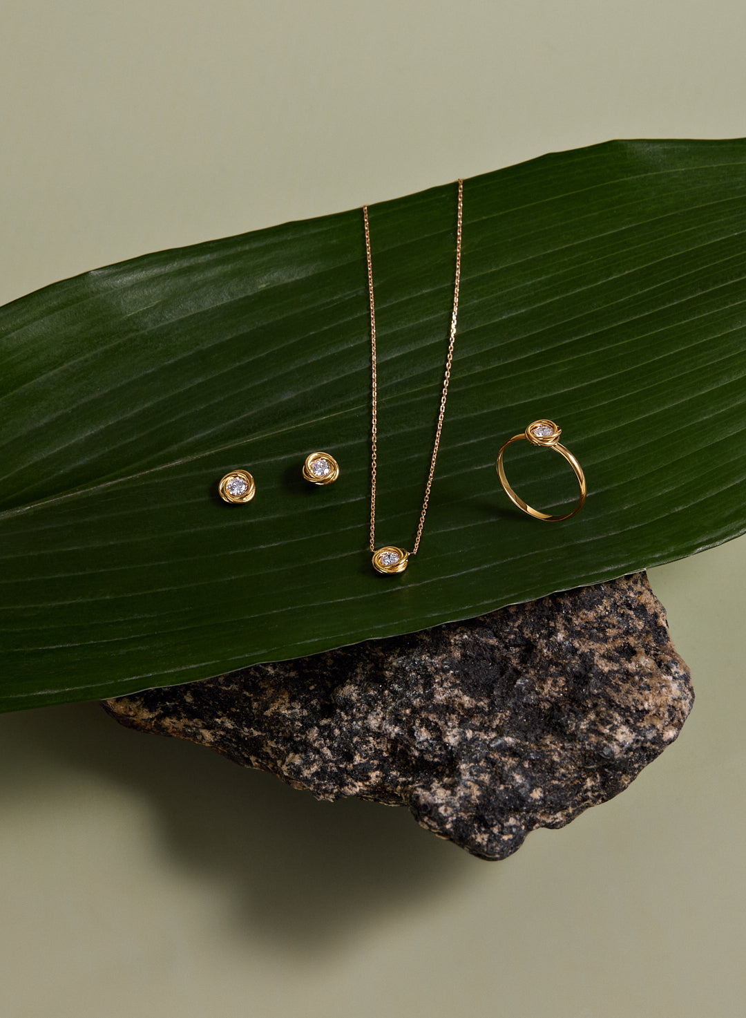 Vi arbetar med 18K guld, ädelstenar och diamanter av högsta kvalitet. Varje smycke är tillverkat med omsorg och respekt för både hantverket och för den som bär det. Vi väljer material med omsorg och bär på en önskan om att skapa hållbara smycken som kan bäras och älskas genom generationer.